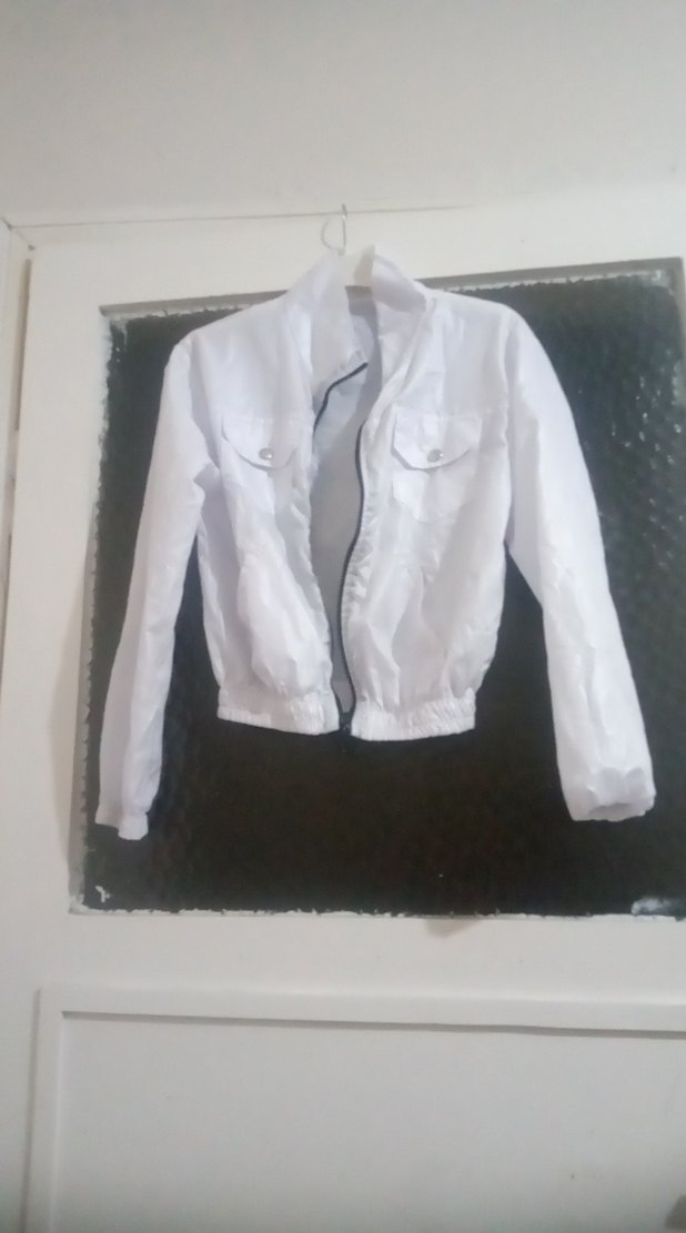Kadınlar için beyaz keten mini ceket, uzun kollu ve düğmeli ön kısmıyla şık ve rahat bir görünüm sunar. Sokak stili için uygun, fit kesim.