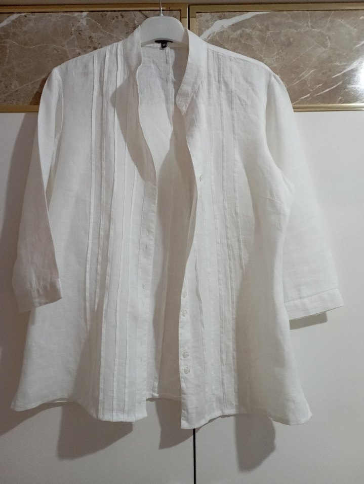 Kadın Beyaz Keten Pileli Gömlek