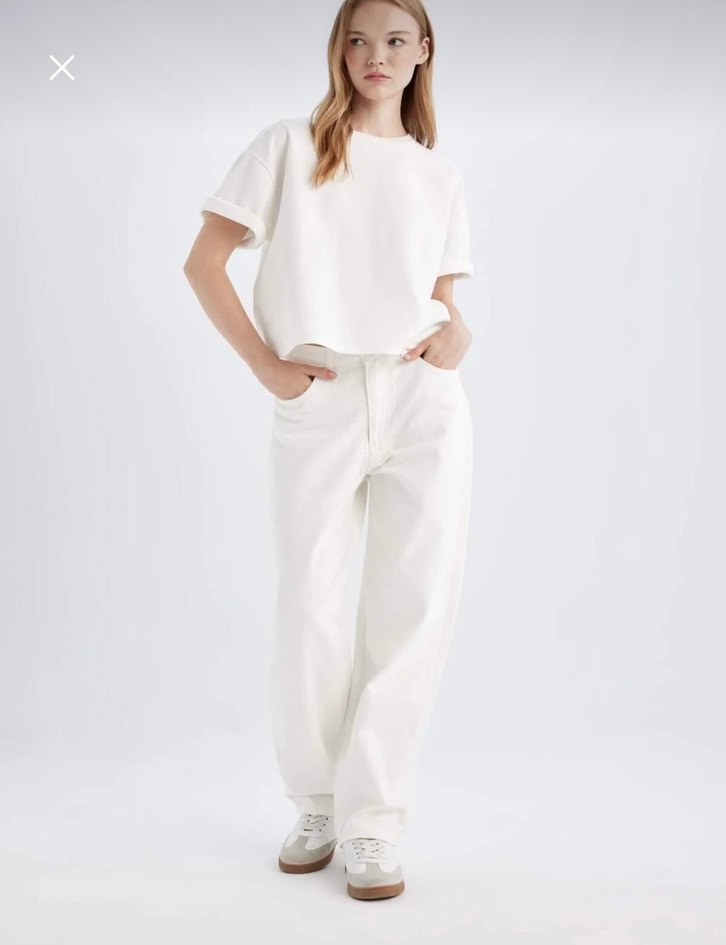 Kadın Beyaz Keten Rahat Kesim Pantolon