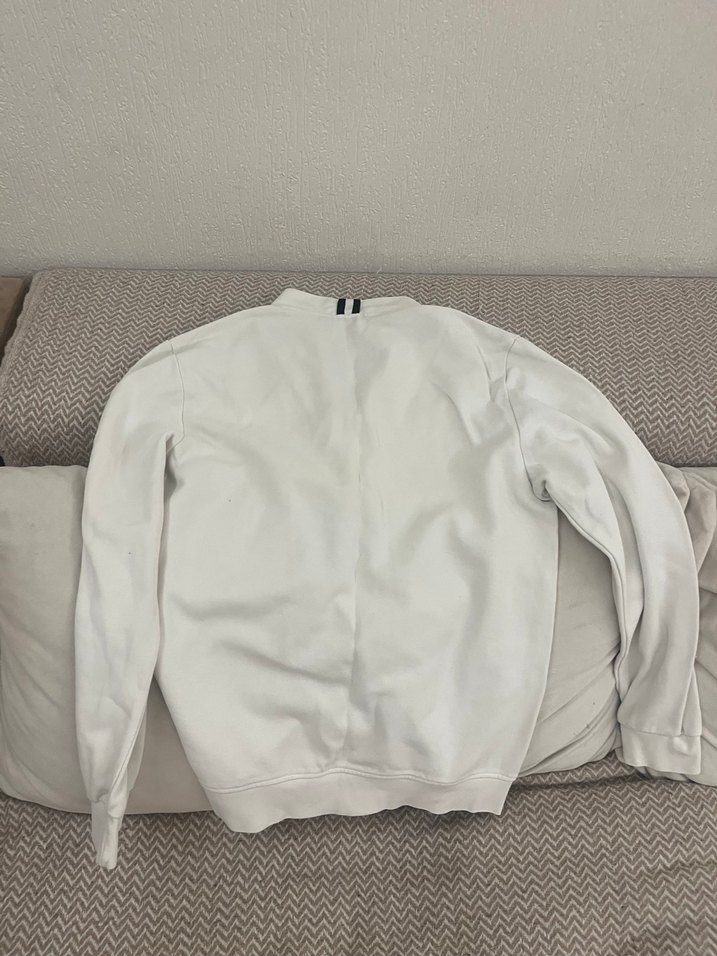 Kadınlar için uzun kollu, bisiklet yaka ve bol kesim keten sweatshirt. Beyaz renkte, minimal ve sokak modasına uygun, günlük kullanıma ideal.
