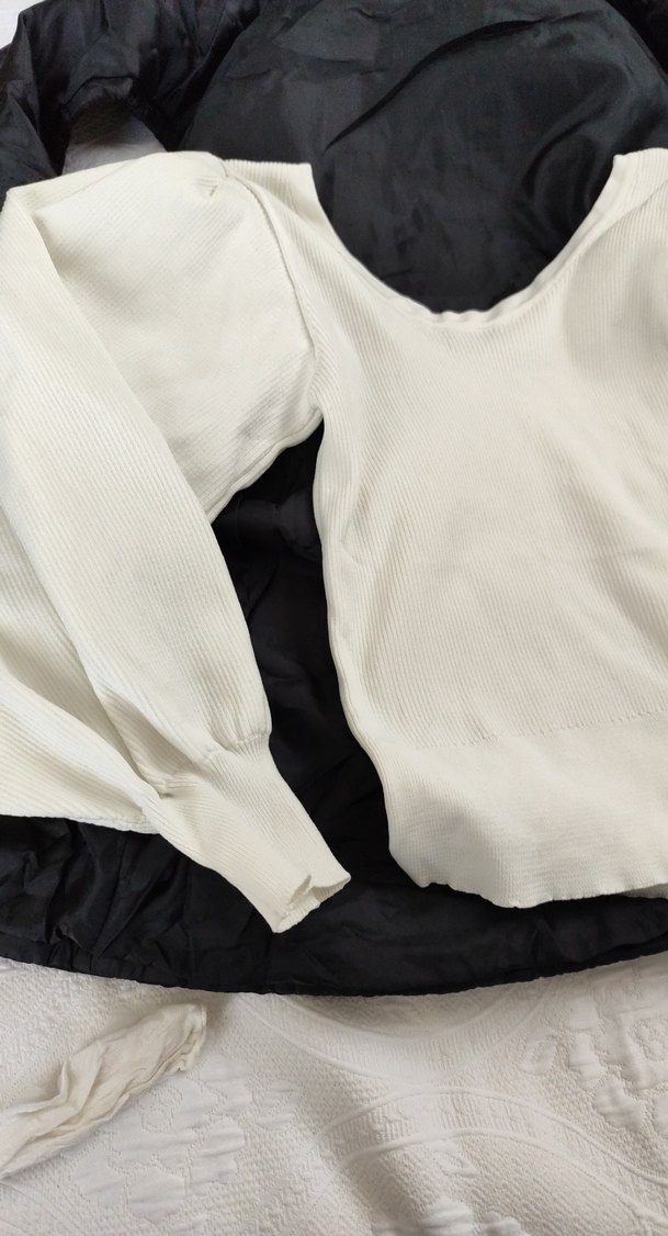 Kadın Beyaz Keten uxu Kollu Tekne Yaka Tişört
