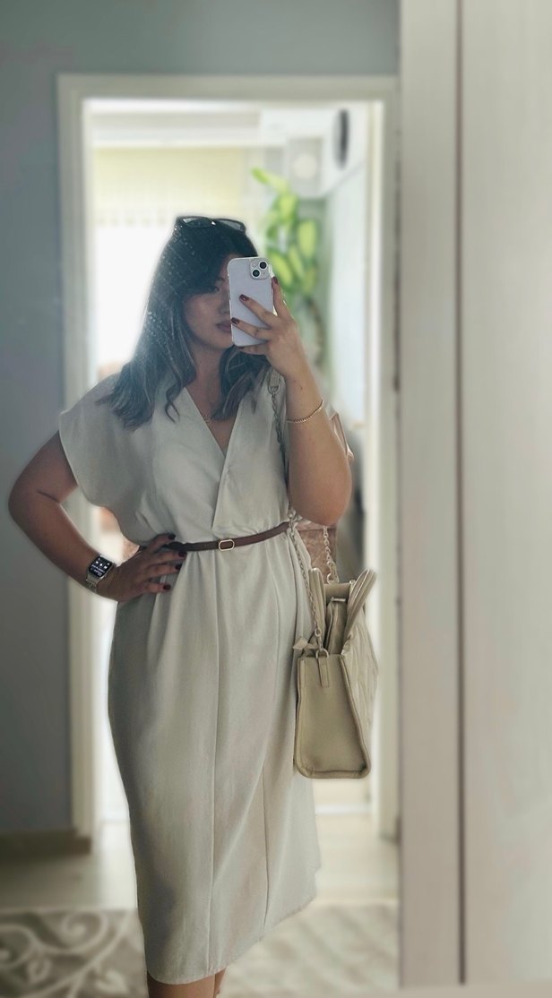 Kadın Beyaz Keten Uzun elbise