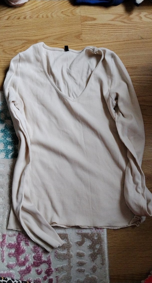 Kadınlar için uzun kollu, V yakalı, rahat keten kumaştan yapılmış bol kesim gömlek. Düz, desensiz ve açık gri tonunda, günlük kullanıma uygun midi boyda rahat bir stil sunar.