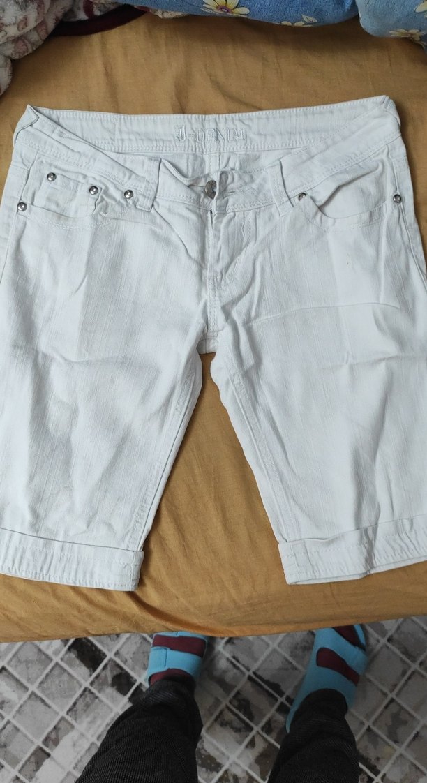 Pamuk kumaştan yapılmış, rahat kesimli beyaz kadın bermuda şort. Sokak stiline uygun, gündelik ve dış mekan kullanımı için ideal.