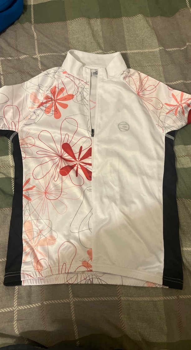 Kadınlar için kısa kollu, fermuarlı yüksek yakalı, baskılı ve fitted kesim beyaz tişört. Siyah yan paneller ve hafif çiçek desenleri bulunur. Günlük kullanıma uygundur.
