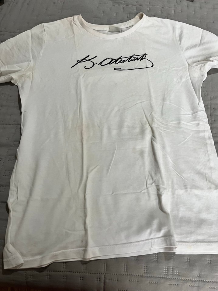 Kadın tişörtü, kısa kollu ve yuvarlak yakalıdır. Pamuk kumaştan, parlak beyaz renkte ve önünde baskılı desene sahiptir. Rahat kesimiyle günlük sokak stiline uygundur.