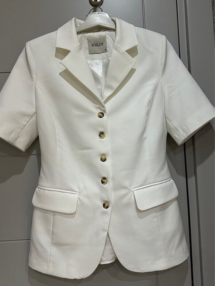Kadın Beyaz Kısa Kollu Düğmeli Blazer