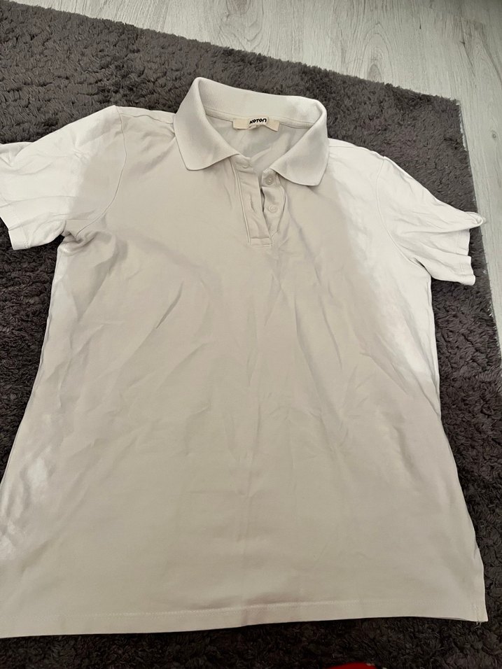 Bu erkek polo tişörtü, kısa kollu ve yakalıdır. Keten kumaştan üretilmiş olup, rahat ve nefes alır. Düz beyaz tasarımı günlük kullanıma uygundur.