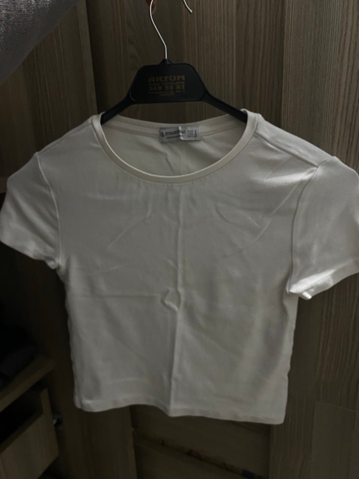 Kadınlar için beyaz crop, kısa kollu, yuvarlak yakalı ve vücuda oturan mini boydadır. Pamuklu yumuşak kumaştan, sade ve minimalist tarzda, günlük kullanıma uygundur.