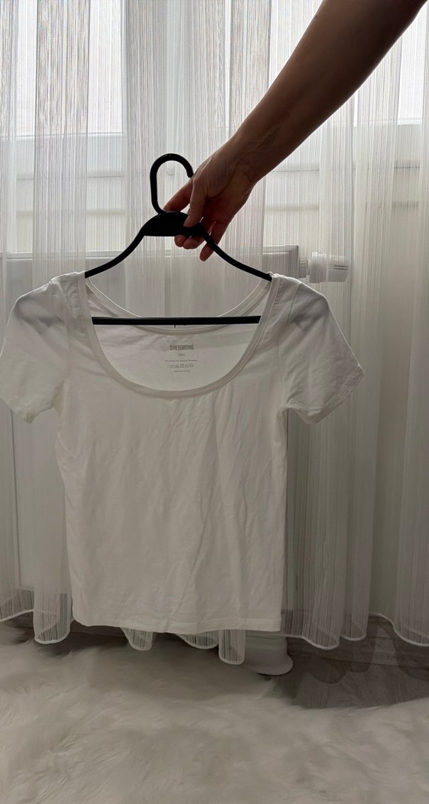 Kadınlar için kısa kollu, yuvarlak yakalı, pamuklu ve vücuda oturan beyaz tişört. Minimalist sokak stiline uygun, günlük kullanıma ideal.