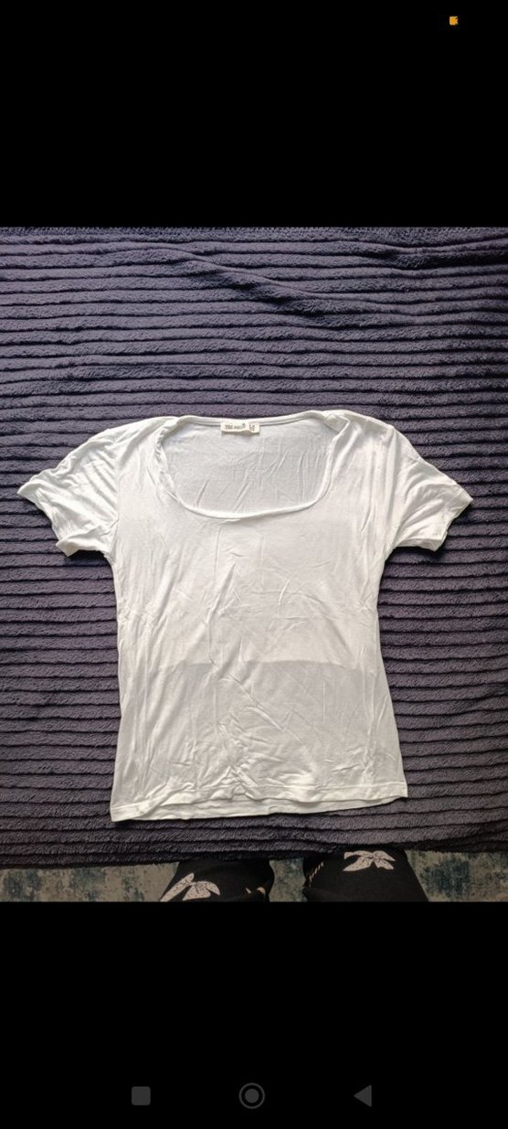 Kadınlar için beyaz, kısa kollu, tek renk ve tekne yaka, pamuk kumaştan yapılmış, sade ve şık günlük sokak stili tişört.