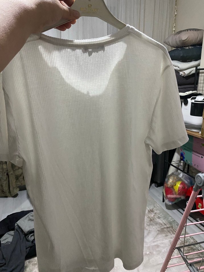 Kadınlar için beyaz likralı kumaştan, bol kesim ve v yaka kısa kollu tişört. Günlük kullanıma uygun, sade ve hafif tasarım sunar.