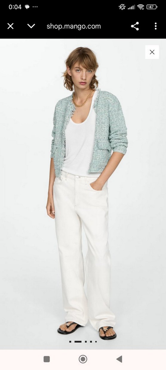 Kadınlar için beyaz, kısa boy, bol kesim ve uzun kollu örgü pamuk hırka. Sokak stiline uygun, rahat ve günlük kullanım için ideal.