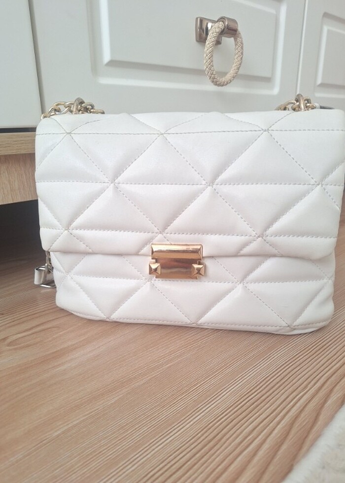 Beyaz kadın kol cantasi ufak tefek soyulmalar mevcuttur bu yüzden fiyati uygun tuttum Marka temsilidir