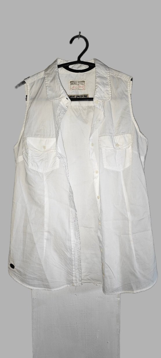 Kolsuz beyaz keten gömlek, yakalı ve düğmeli ön cep detaylıdır. Rahat kesimi ile günlük sokak stiline uygundur.