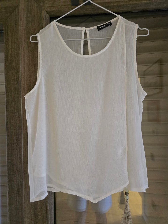 Önü iki parçalı, püskül detaylı şifon kolsuz bluz, sadece bir kez kullanıldı #zara #mango #yargıcı #bershka #h&m #beymen #vakko #ipekyol #network #twist