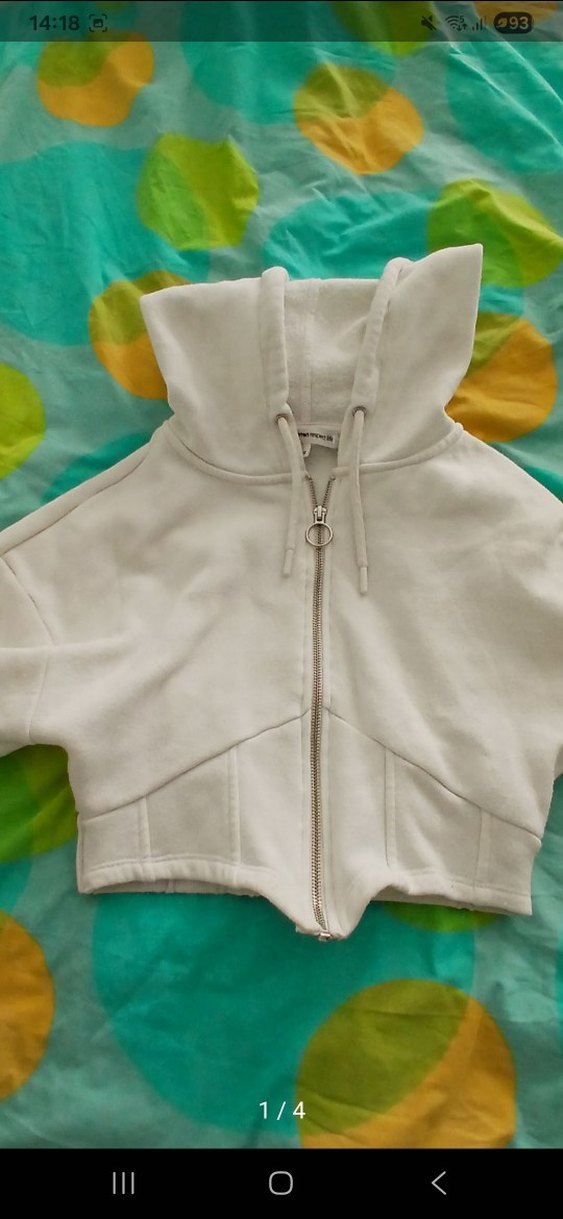 Kadın Beyaz Korse Detay Fermuarlı Kapüşonlu Sweatshirt