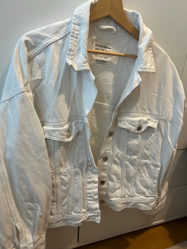 Beyaz renkli kot ceket, düğmeli ön, kesik yakalı ve uzun kolludur. Salaş kesimi ve midi boyu ile gündelik rahat stil için uygundur. Desensiz ve gri tonlarında, günlük kullanıma uygundur.