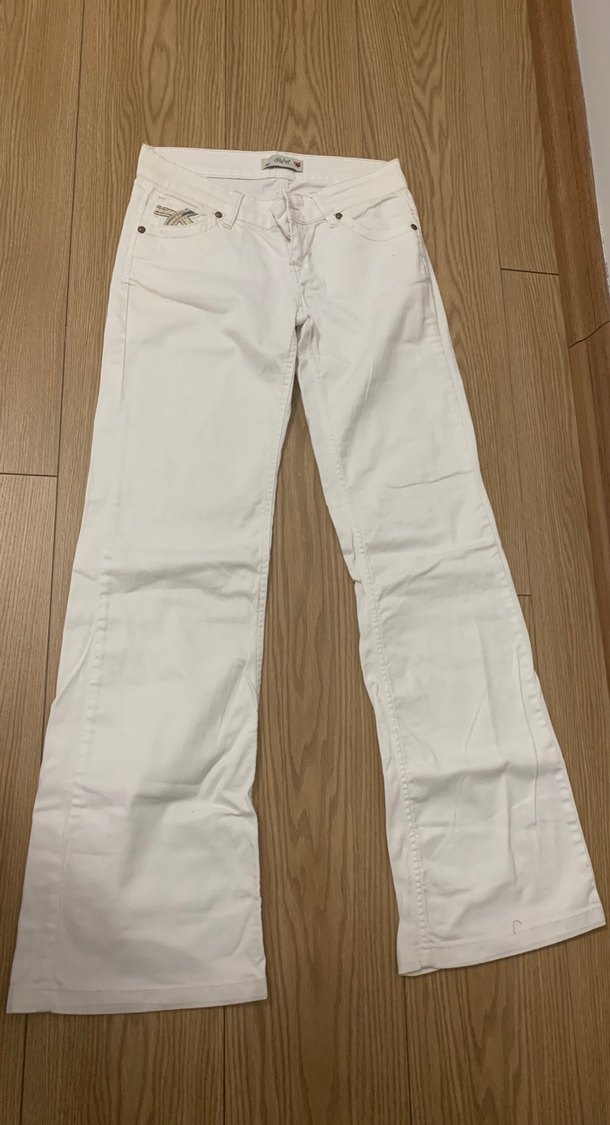 Kadınlar için beyaz pamuk kumaş pantolon, normal boy ve regular fit ile rahat ve şık bir sokak stili sunar. 38 beden, düşük bel. 38 beden ama 36-38 giyen birisi için uygun. Herhangi bir lekesi vs yoktur.