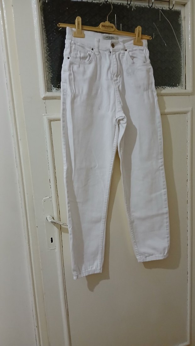 boyu 98 cm, belin tamamı 71 cmdir. beden 27 yazıyor. yırtığı söküğü yoktur Pamuklu kumaştan üretilmiş, beyaz renkli, rahat kesim midi kot pantolon. Günlük kullanıma uygun, sokak stiliyle uyumlu rahat tasarım. #Jean #jeans #beyazjeans