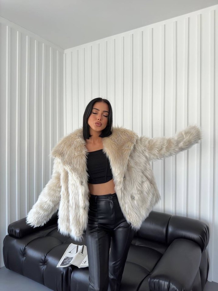 Kadın Beyaz Kürk Detaylı Deri Mont