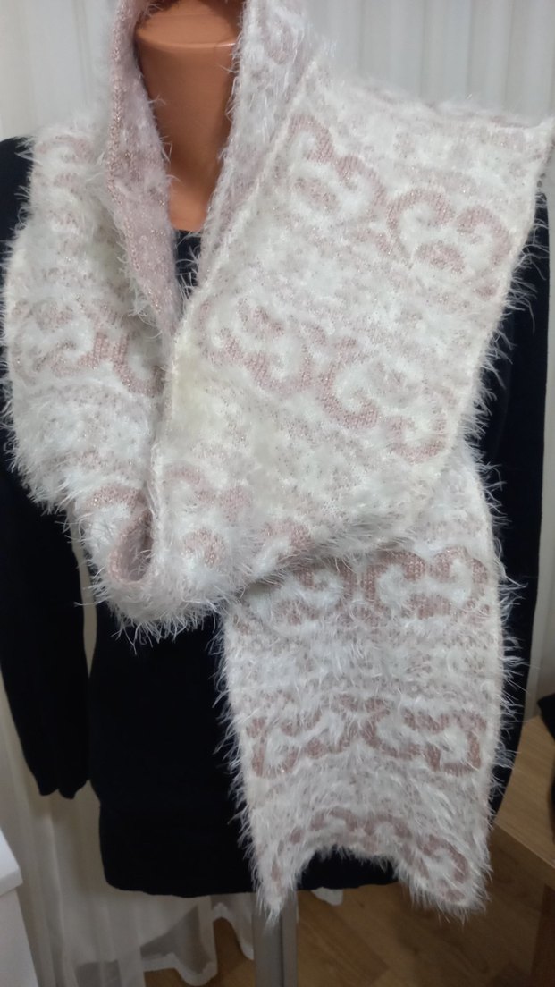 Kadın Beyaz Kürklü Örgü Bohem Şal