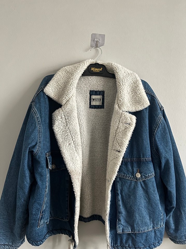 Mavi kot ceketin oversize kesimi ve normal boyu vardır. Notlu yaka ve yumuşak, sıcak kürk astarıyla günlük sokak stiline uygundur. Sadece 2-3 kere giyildi Twistır markalıdır