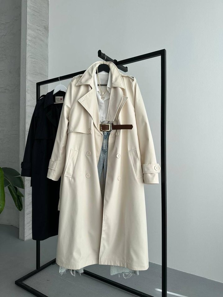 Kadın Beyaz Kuşaklı Uzun Trençkot