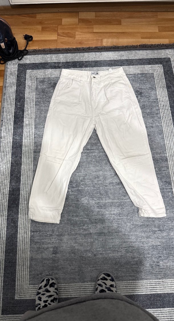 Kadın Beyaz Loose Fit Midi Kot Pantolon - Görsel 1