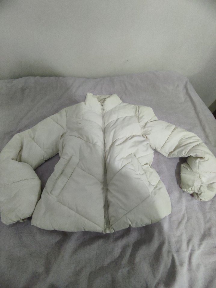 Bu kadın beyaz kışlık mont, yumuşak ve sıcak kumaştan üretilmiş, yakalı ve uzun kolludur. Normal midi boyda, günlük kullanım için uygundur. ❄️