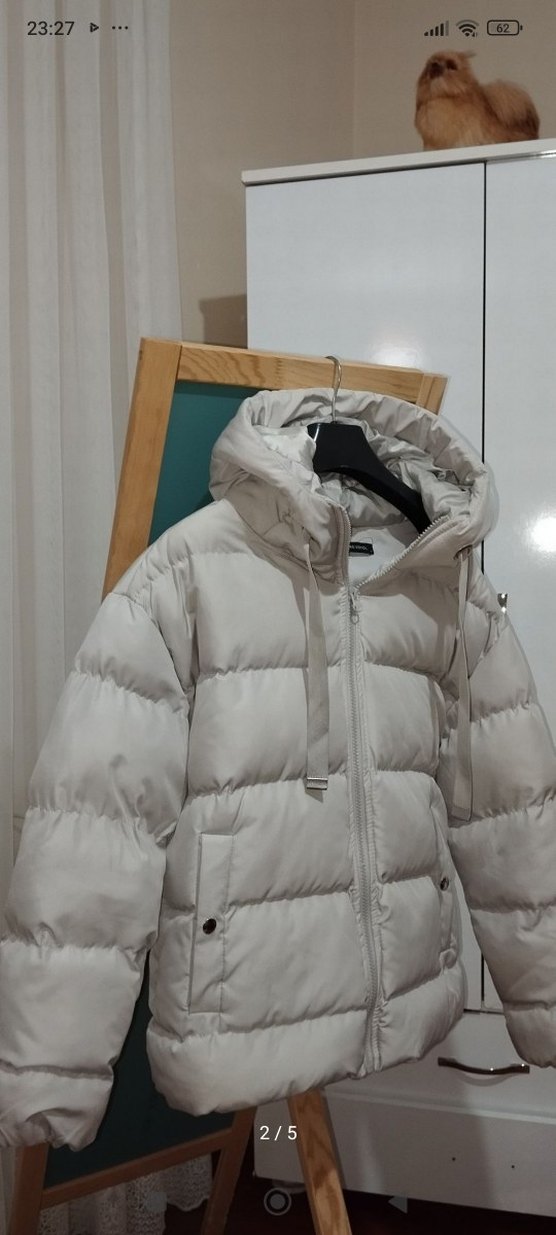 Yüksek yakalı, fermuarlı kadın kışlık mont, yumuşak sentetik kumaştan yapılmıştır. Beyaz ve gri tonlarında, midi boy ve dar kesimdir, şık ve rahat kullanım için uygundur. ❄️