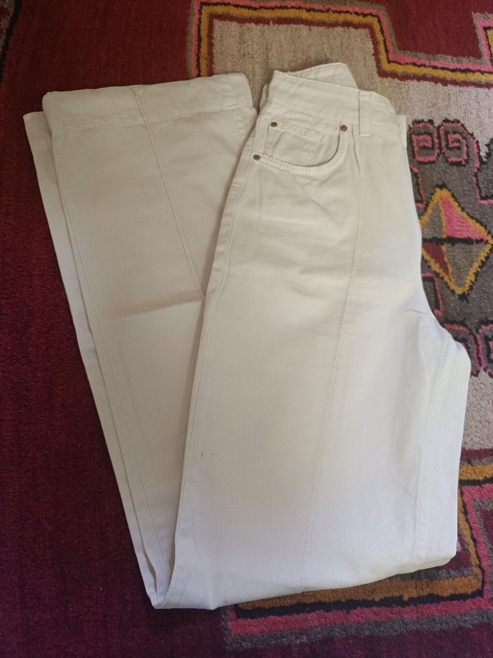 Kadın Beyaz Midi Pamuk Kumaş Pantolon