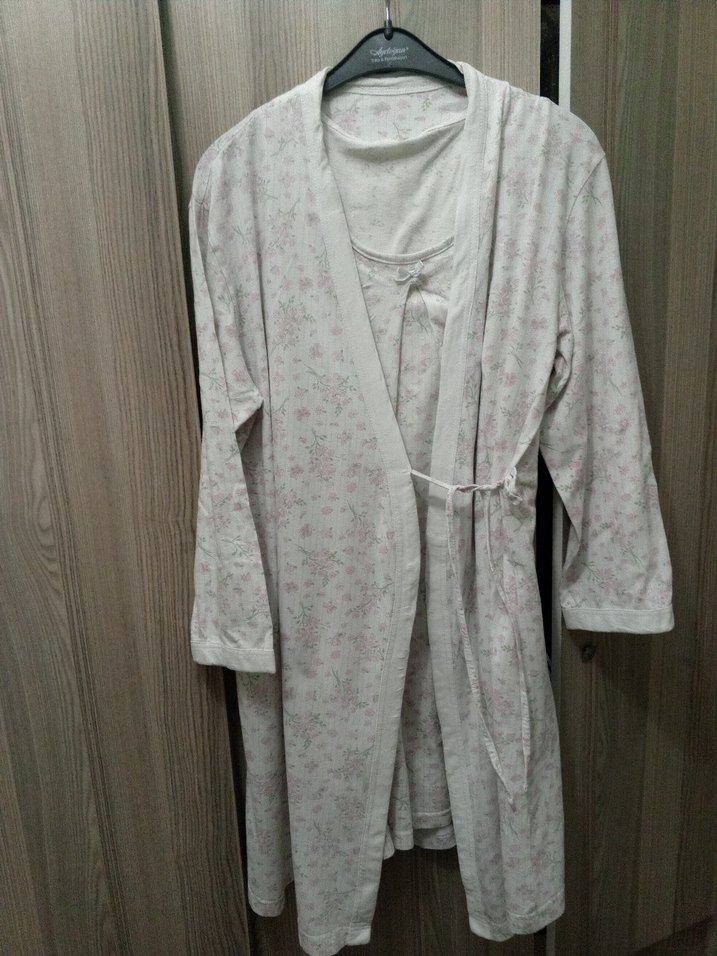 Kadın beyaz sabahlık, uzun kollu ve midi boydadır. Rahat kesimi ve ince çiçek deseni ile konforlu bir normcore tarz sunar.logusa sabaklik takimi AZ kullanildi herhangi bir kusuru yoktur. emzirme detayli penye kumas cok rahat