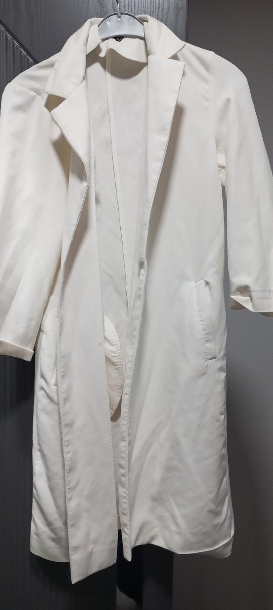 Bu beyaz midi trençkot, kesik yaka ve düğmesizdir . bilekte kolu, regular fit, dar kesim ve minimalist sokak tarzındadır, sentetik kumaştan üretilmiştir. Günlük kullanım için uygundur.