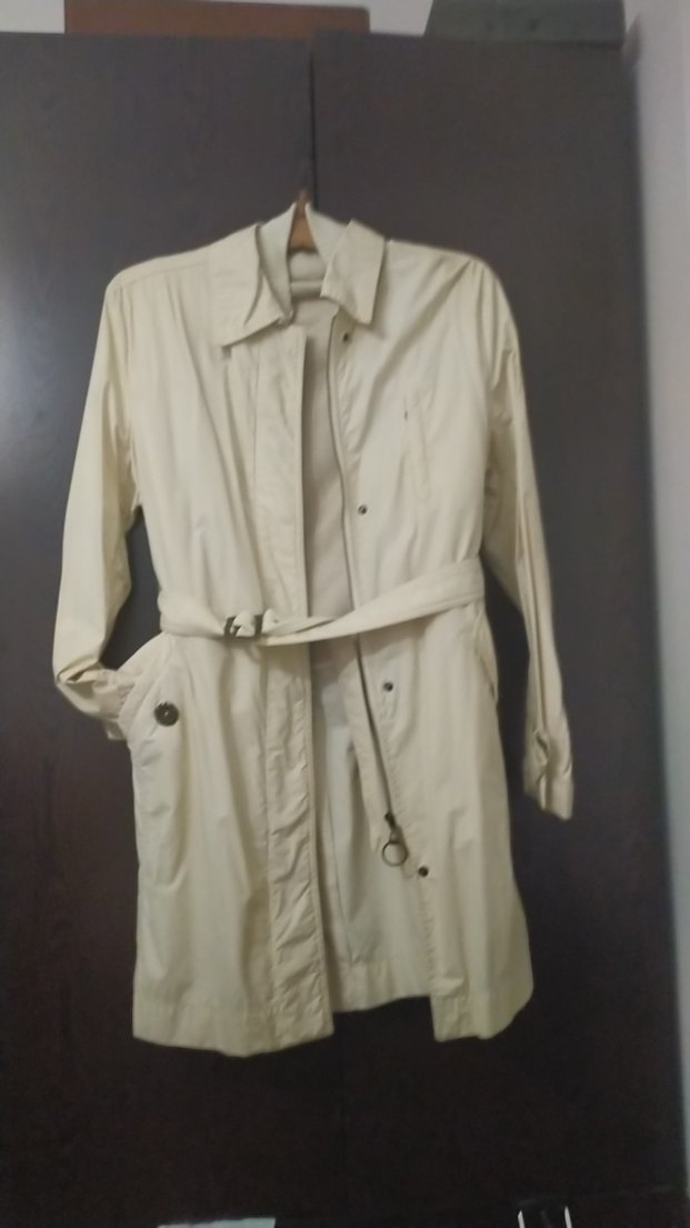 Kadın beyaz midi trençkot, kemerli ve uzun kolludur. Notch yaka, regular kesim ve sentetik kumaştan yapılmıştır. Günlük kullanım için uygundur.