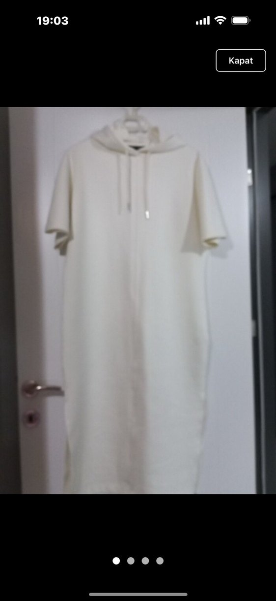 Beyaz renkli, kısa kollu, yuvarlak yaka ve rahat kesimli triko elbise. Minimalist tarzıyla günlük kullanıma uygun, zahmetsiz şıklık sunar.
