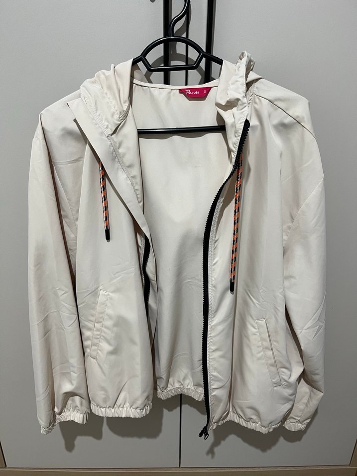 Kadınlar için beyaz ve gri tonlarında, fermuarlı, uzun kollu, midi uzunlukta, bol kesim sentetik kumaştan yapılmış ceket. Notlu yaka ve dış mekan kullanımı için uygundur.