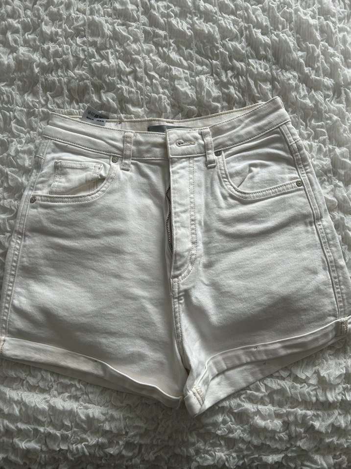 Beyaz pamuklu mini denim şort, rahat kesimi ve günlük sokak stiliyle her gün kullanıma uygundur 25 beden.