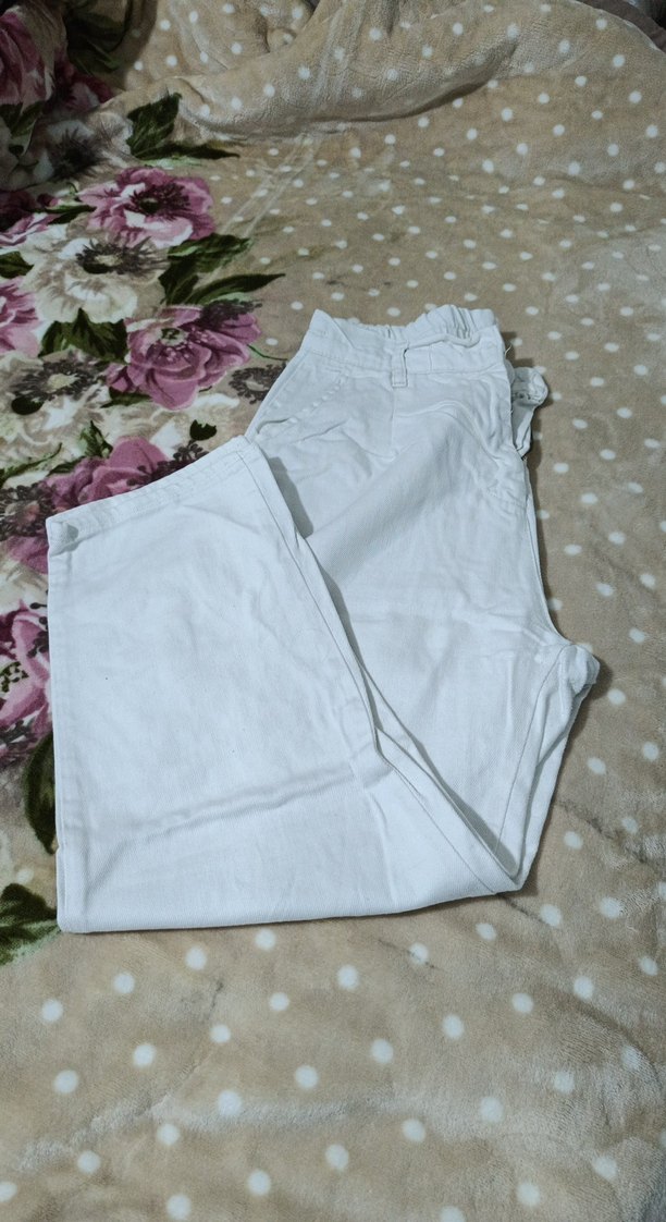 Beyaz pamuklu mini uzunlukta, bol kesim ve düğmeli detaylı kadın pantolonu. Günlük sokak stiline uygun rahat bir model. ölçüleri resimlerde tertemiz yepyeni marka temsili