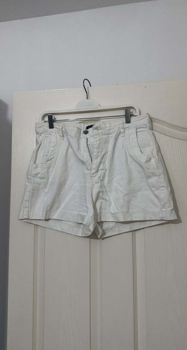Kadınlar için beyaz mini şortlar, bol kesim ve yumuşak pamuklu kumaştan yapılmıştır. Minimalist sokak stili ve dış mekan kullanımı için uygundur. Hiçbir kusuru lekesi dahi yoktur.