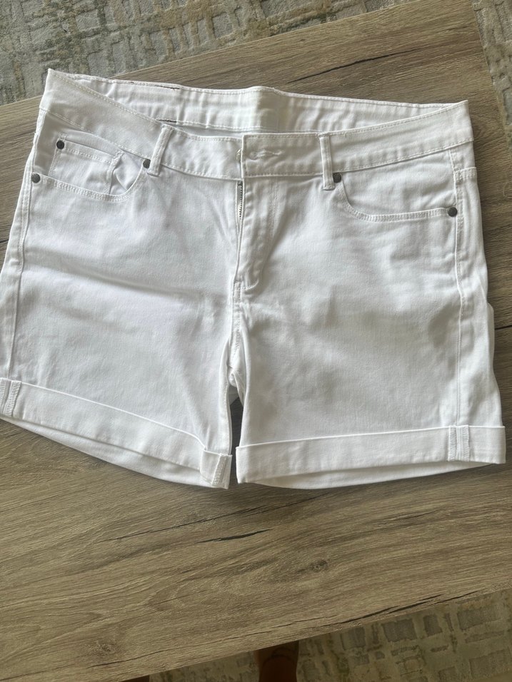Pamuklu kumaştan, bol kesim, düz beyaz mini şort. Sokak modasına uygun, gündelik kullanım için zahmetsiz şıklık sunar. Kumaşı esnek ve yumuşaktır. Sadece 1 kez kullanıldı temiz ve defosuzdur beden kaynaklı satılmaktadır.