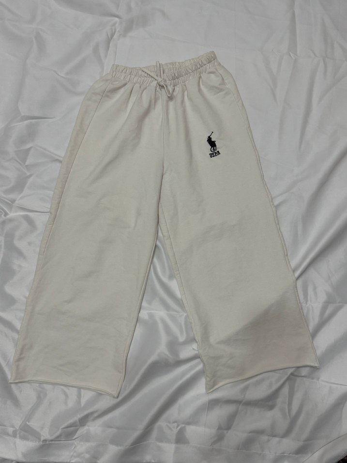 Bayanlar için beyaz, kısa paça ve bol kesim sweatpants. Yumuşak kumaş ve minimal siyah logo detayına sahip, günlük rahat kullanım için uygun. ♂️