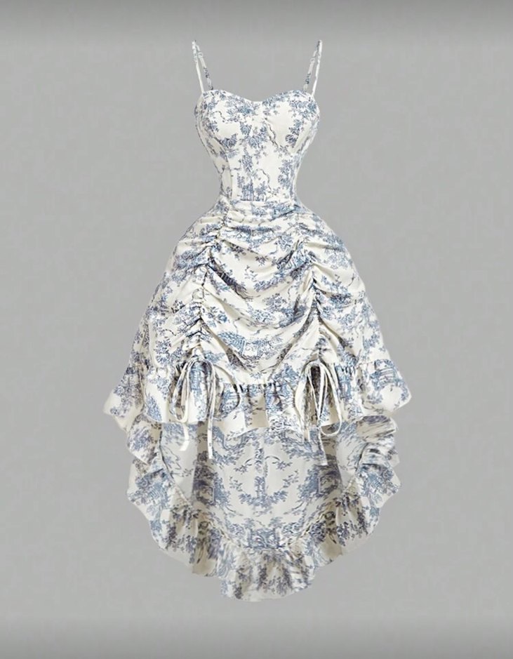 Nakışlı desenlere ve fırfır detaylara sahip, askılı ve straplez yakalı beyaz, vücuda oturan uzun elbise. Bohem ve klasik zarafeti bir arada sunar. Düğünler için uygun.