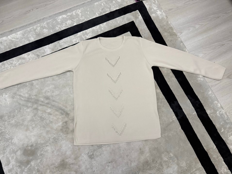 Kadın Beyaz Nakışlı Uzun Kollu Pamuklu Tişört - Görsel 1