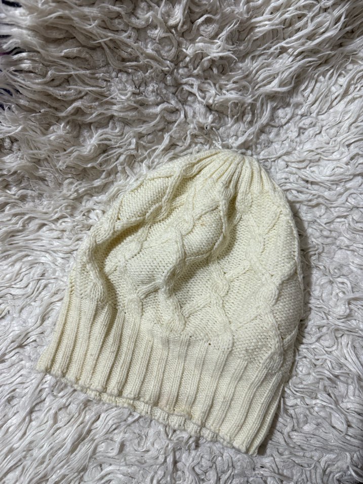 Kadınlar için örgü dokulu, yumuşak beyaz renkte bere. Rahat ve bohem tarzda, pastel tonlarda sade ve temel görünümlü. Sıcaklık ve konfor sağlar.