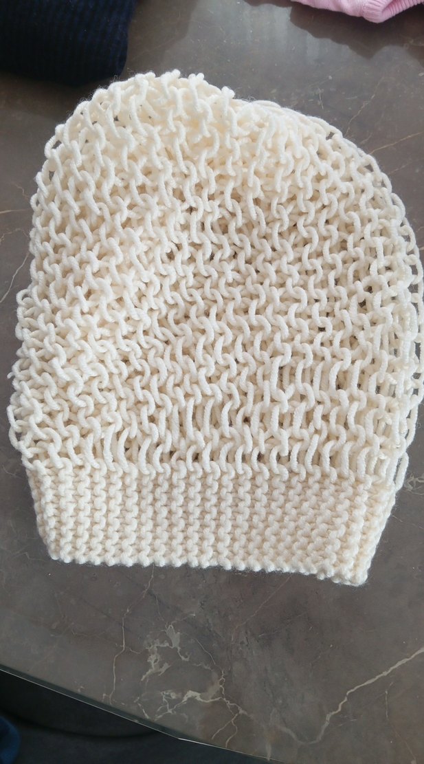 Kadınlar için yumuşak örgü kumaştan yapılmış beyaz örgü bere, rahat ve şık bir görünüm sunar.