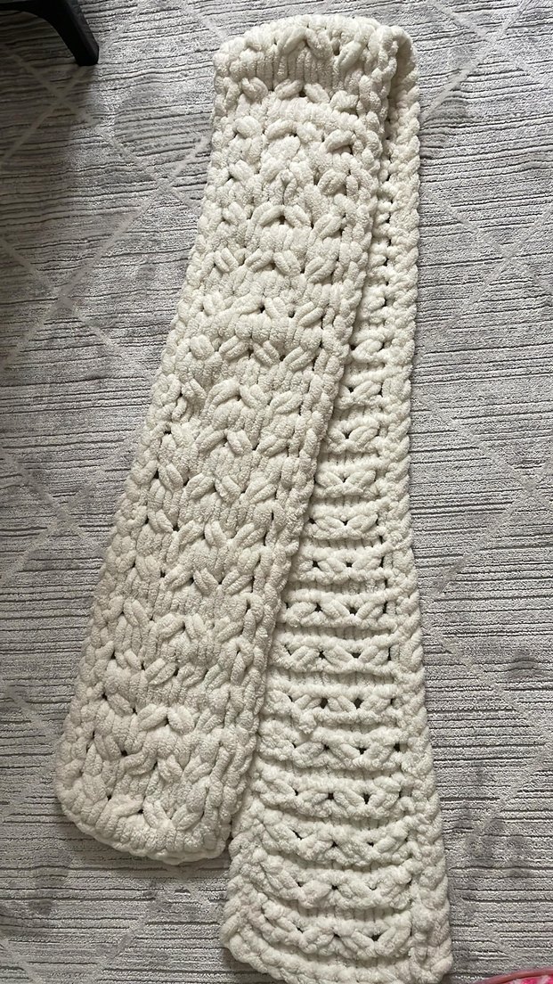 Kadınlar için beyaz renkte, örgü dokulu, yumuşak ve bohem tarzda rahat bir şal. Sade ve temel tarzlara uygundur.
