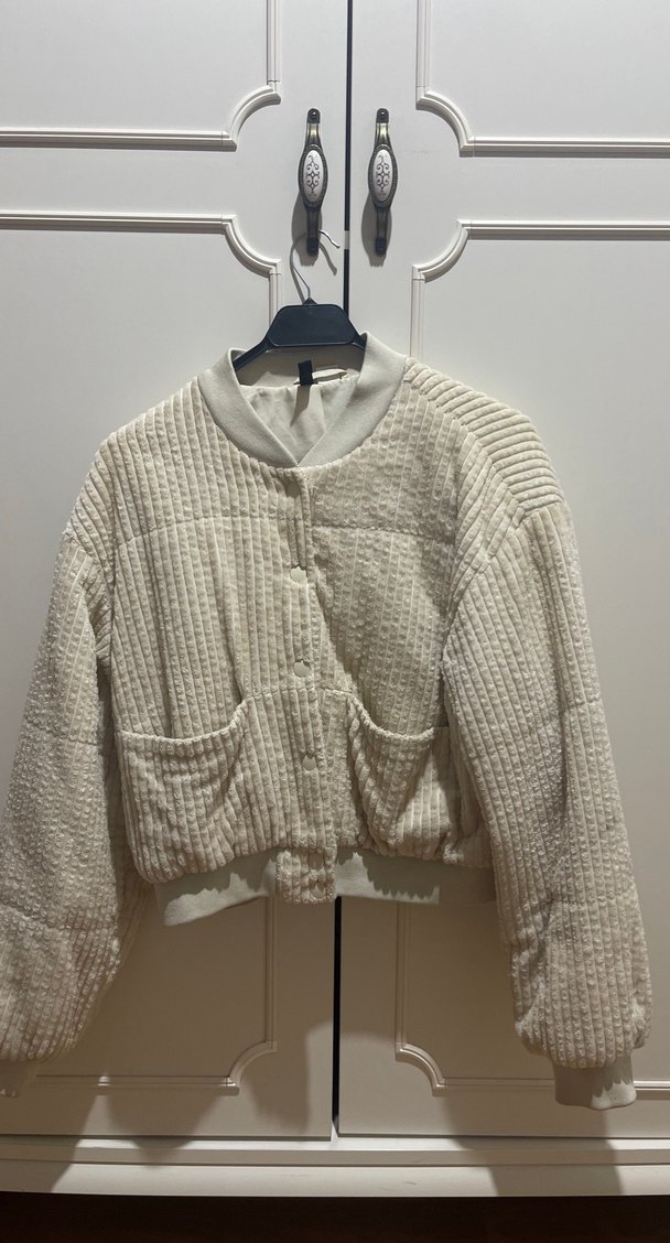 Kadınlar için örgü dokulu, yuvarlak yaka ve uzun kollu mini ceket. Rahat kesimli ve kısa boyda, günlük kullanıma uygun gri tonlarında. küçük bir lekesi var yıkandığında geçecektir