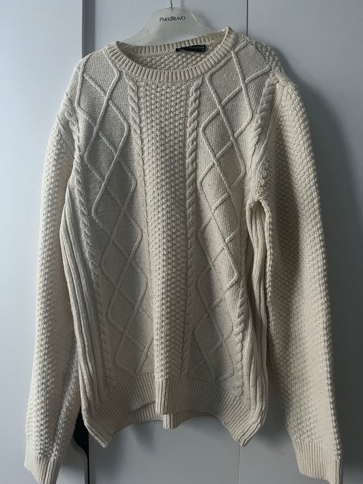 Beyaz renkli, örgü triko kazak, yuvarlak yaka ve uzun kolludur. Salaş kesimiyle rahat ve gündelik sokak tarzına uygundur.
