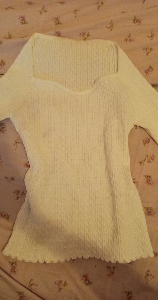 Beyaz, ince örgü dokulu, tek renk, uzun kollu ve tekne yaka kadın triko bluz. Normal midi boyda, rahat ve günlük kullanıma uygun bir model.
